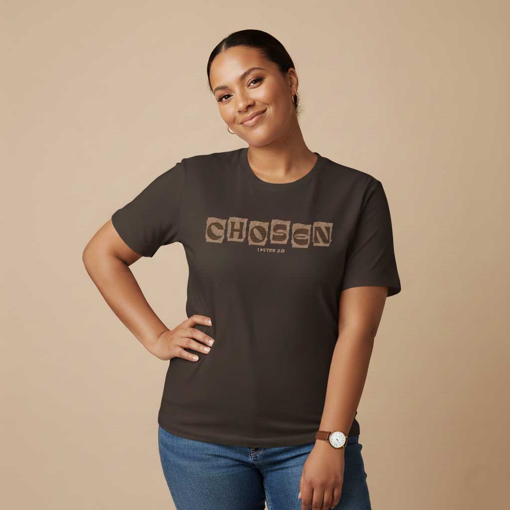 The Chosen – Unisex Christian T-Shirt is a powerful reminder of who you are in Christ. Featuring rustic block-style lettering and the scripture reference 1 Peter 2:9, this design highlights your royal identity, divine purpose, and unique calling.