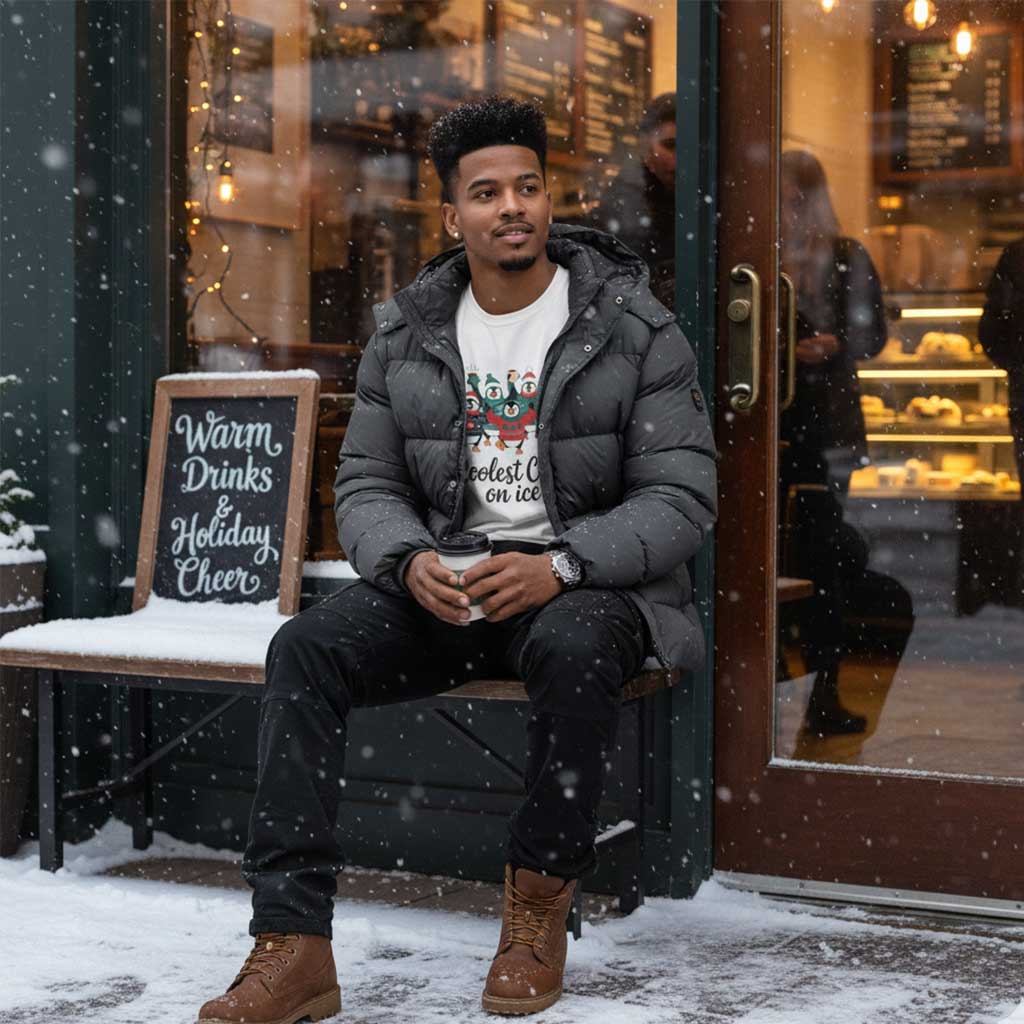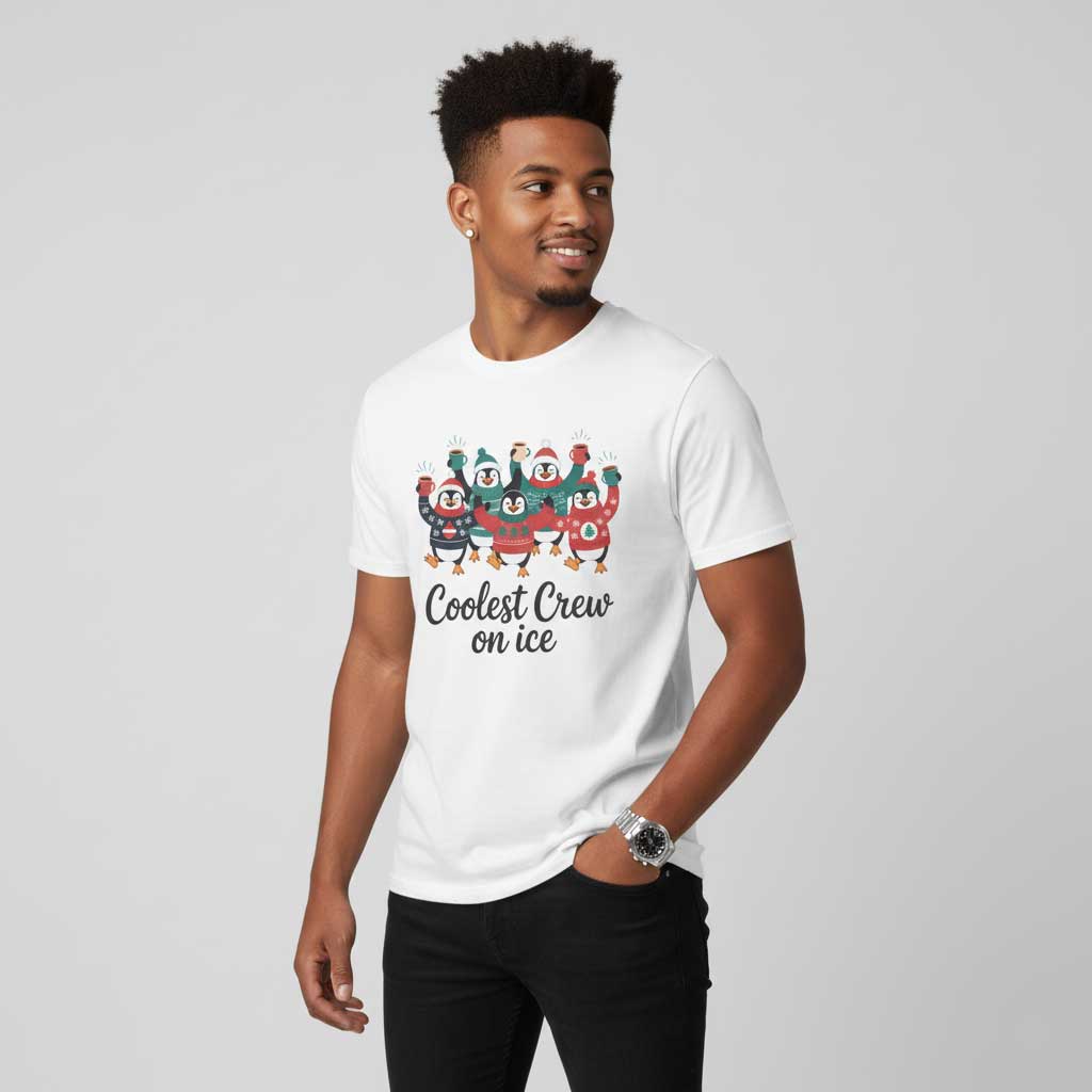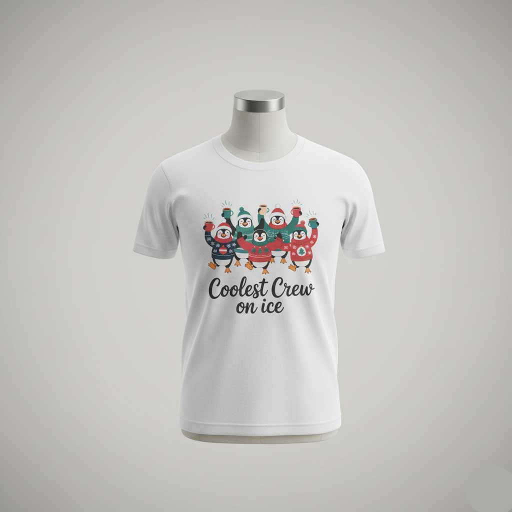 The Coolest Crew on Ice – Unisex Christmas T-Shirt celebrates friendship, fun, and festive cheer. Featuring a group of joyful penguins dressed in cozy Christmas sweaters and raising warm mugs together, this design captures the warmth of holiday togetherness — even in icy weather!