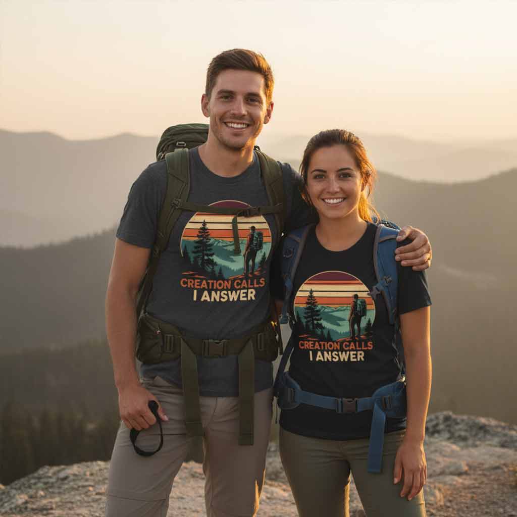 This “Creation Calls I Answer – Unisex Christian T-Shirt” is designed for believers whose hearts awaken when they stand in the beauty of God’s creation. Featuring a vintage sunset palette and a hiker gazing over layered mountains, this Christian T-Shirt reflects Psalm-inspired awe and the calling to step into God’s handiwork.