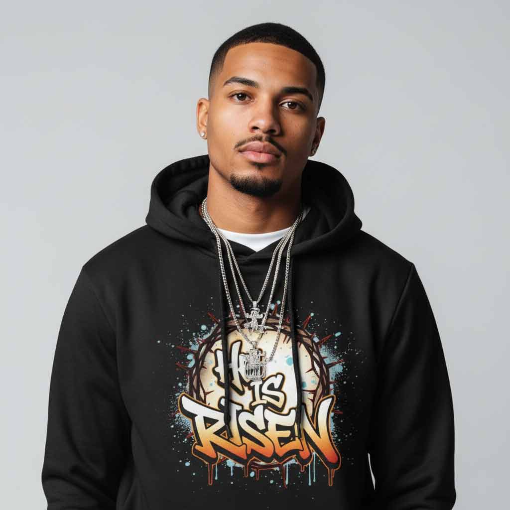 The “He Is Risen – Unisex Christian Hoodie” boldly celebrates the resurrection and the victory of Christ. Featuring powerful graffiti-style typography framed by a crown of thorns, this design reflects both sacrifice and triumph.