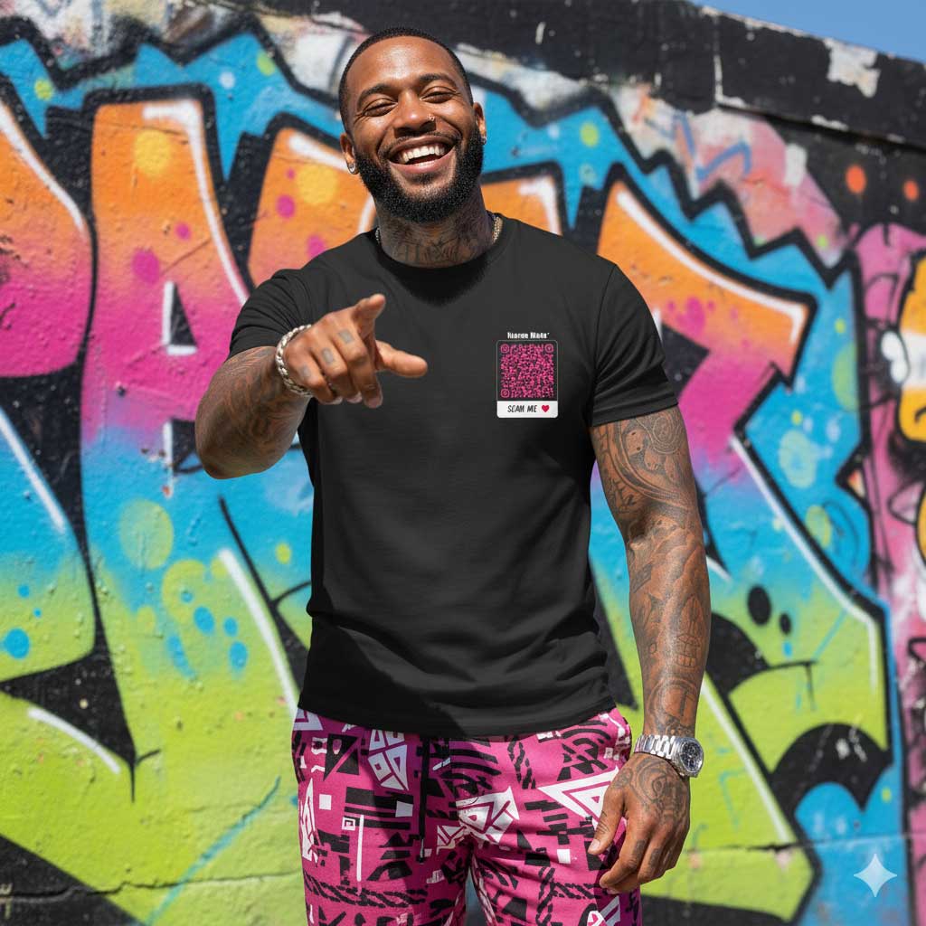 • “Heaven’s Imprint” QR code artwork printed on the chest