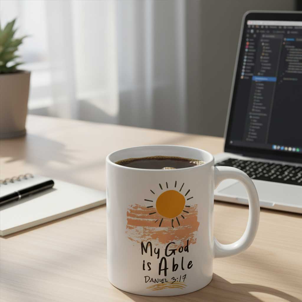 This “My God Is Able – Christian Mug” is a daily reminder of God’s unmatched power and faithfulness, beautifully inspired by Daniel 3:17. This uplifting Christian Mug features a warm sunrise design that symbolizes hope, strength, and unshakable confidence in God’s ability to deliver and provide.