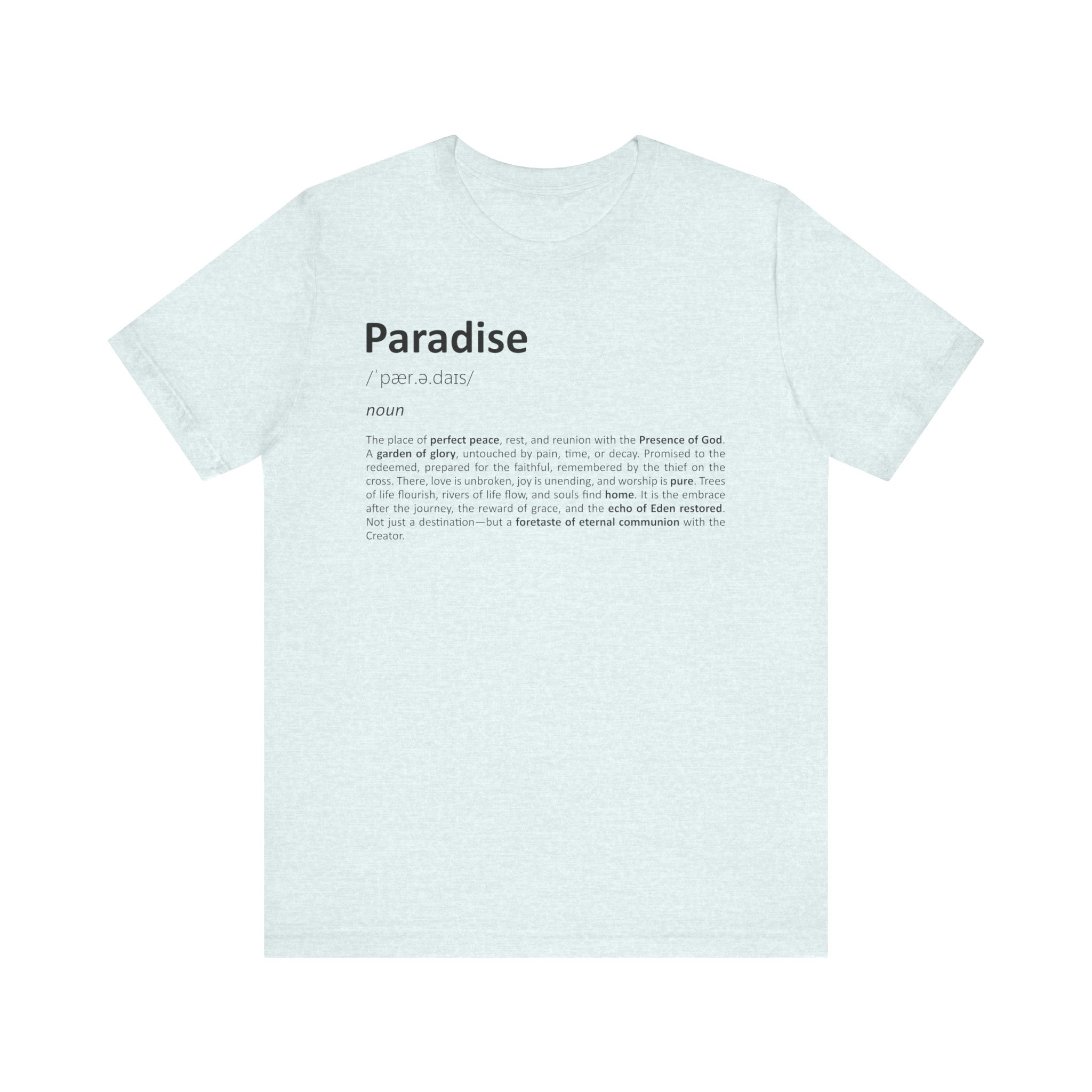 The Paradise Definition – Heavenly Unisex T-Shirt captures the quiet beauty of eternal peace and divine promise. Designed in a modern, dictionary-style layout, it’s a wearable reflection of God’s perfect paradise — reminding you that Heaven isn’t just a destination, but a daily mindset.