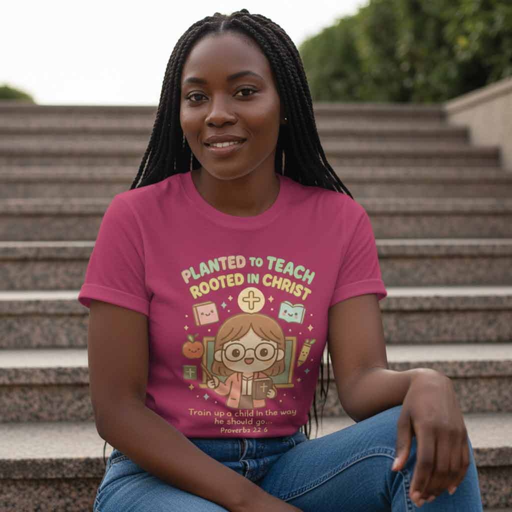Step boldly into your calling. Wear your faith, lead with love, and inspire others with the Planted to Teach T-Shirt — a tribute to those rooted in Christ and growing in grace.