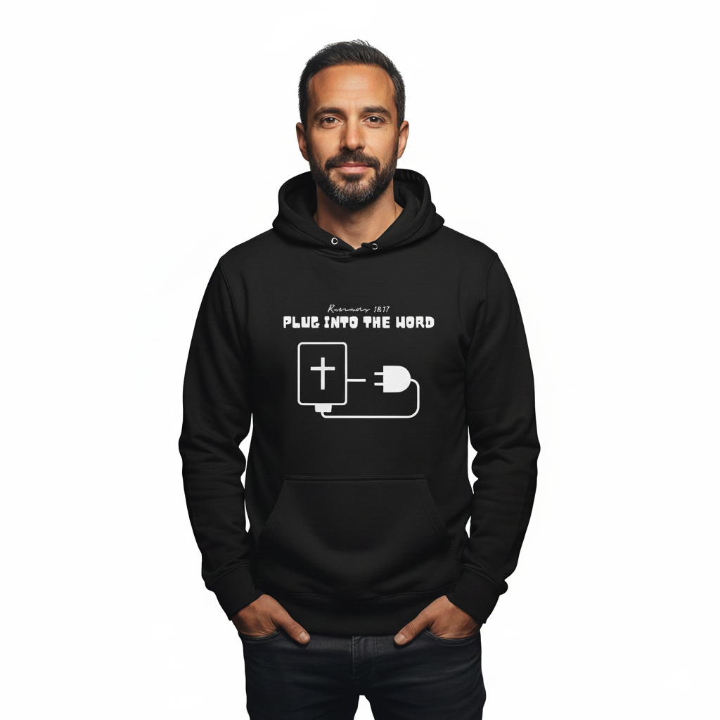 The Plug Into The Word Black Christian Hoodie is a cozy statement of faith and daily inspiration. Rooted in Romans 10:17 — “Faith comes by hearing, and hearing by the Word of God”, its symbolic plug-and-bible graphic encourages believers to stay spiritually charged through God’s truth. This premium black hoodie combines warmth, durability, and a minimalist aesthetic, perfect for cool days, church gatherings, or everyday wear with purpose.