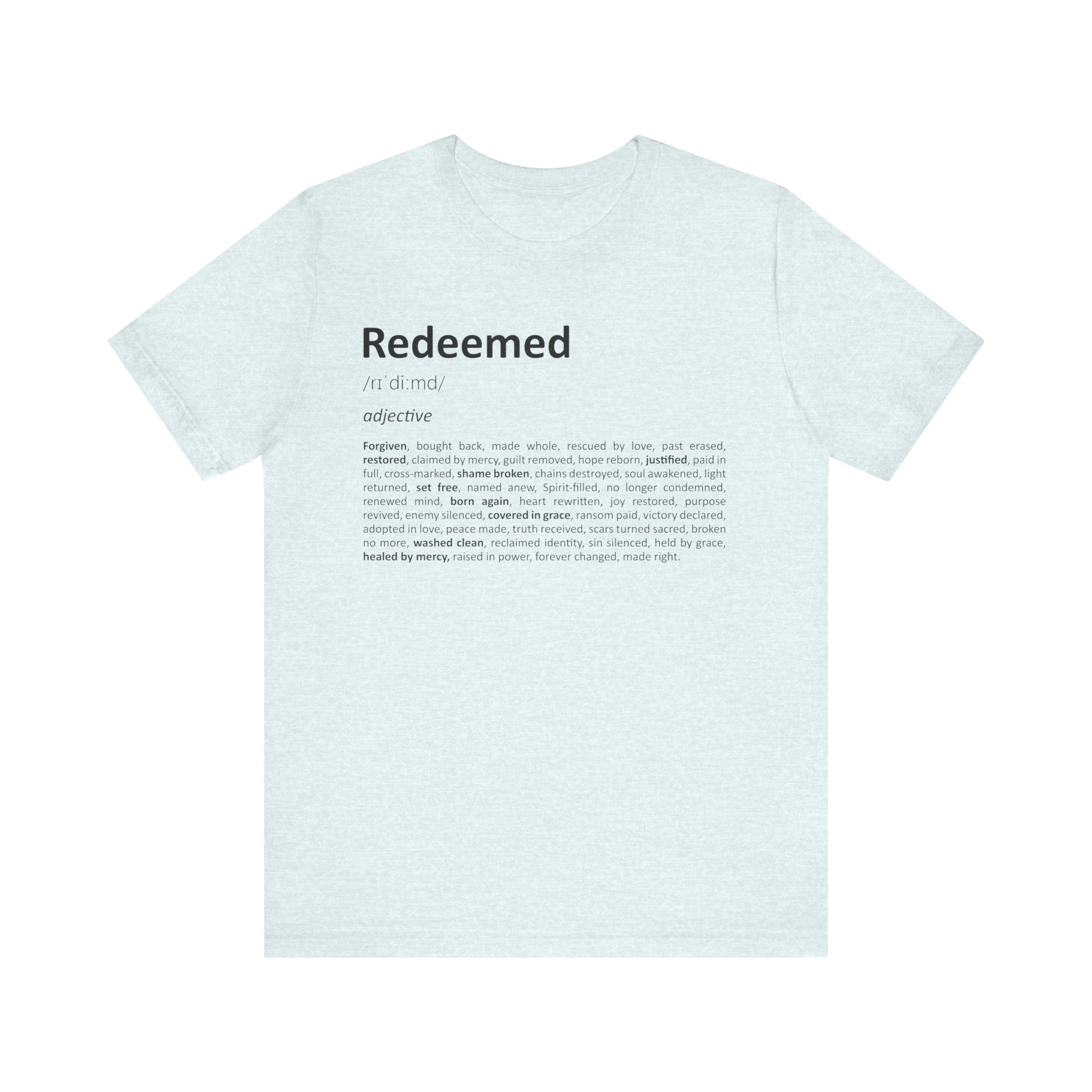 - Clean definition-style layout spelling out “Redeemed” with clarity and conviction