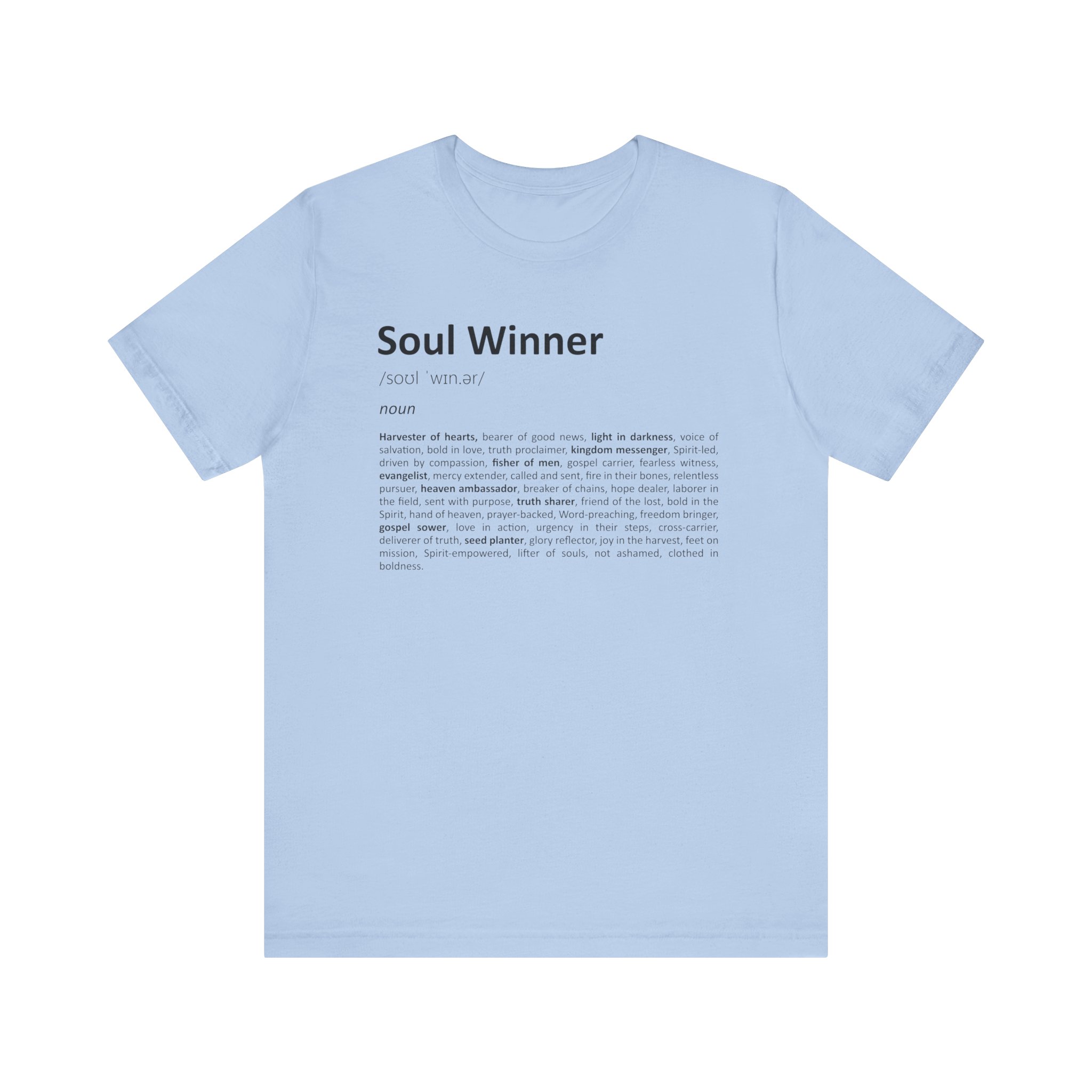 The Soul Winner Definition Evangelism Christian Tee is designed for believers who live with purpose and a passion for sharing God’s love. Featuring a clean, dictionary-style definition of “Soul Winner” in elegant, faith-rooted typography, this tee is simple, powerful, and inspiring.