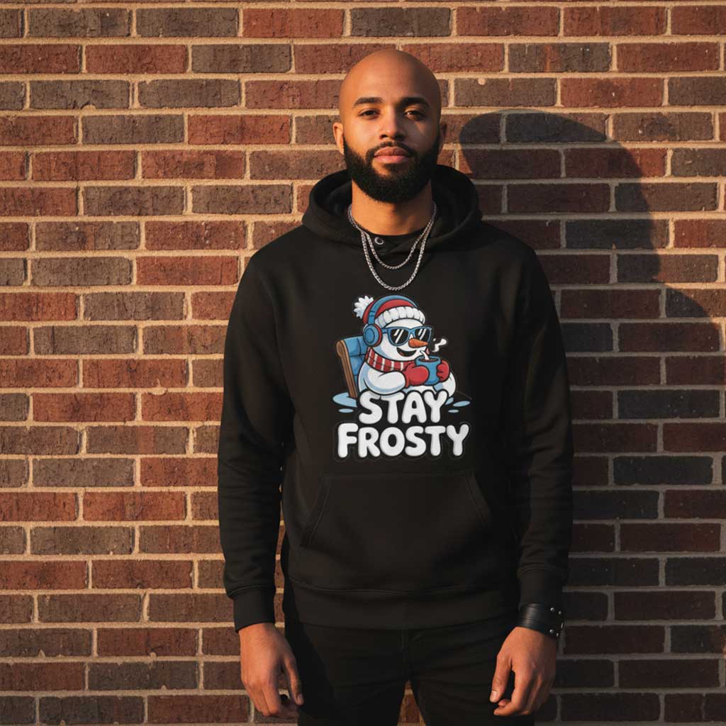 The Stay Frosty – Unisex Christmas Hoodie combines holiday fun with effortless cool. Featuring a chilled snowman lounging in a winter chair, wearing sunglasses and headphones while sipping a hot drink, this design captures the fun, relaxed, and modern side of Christmas.