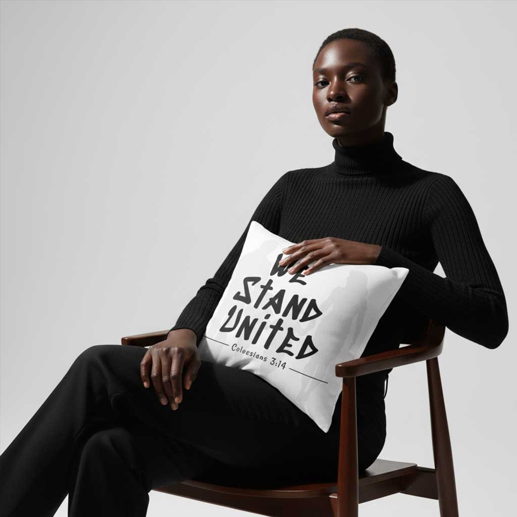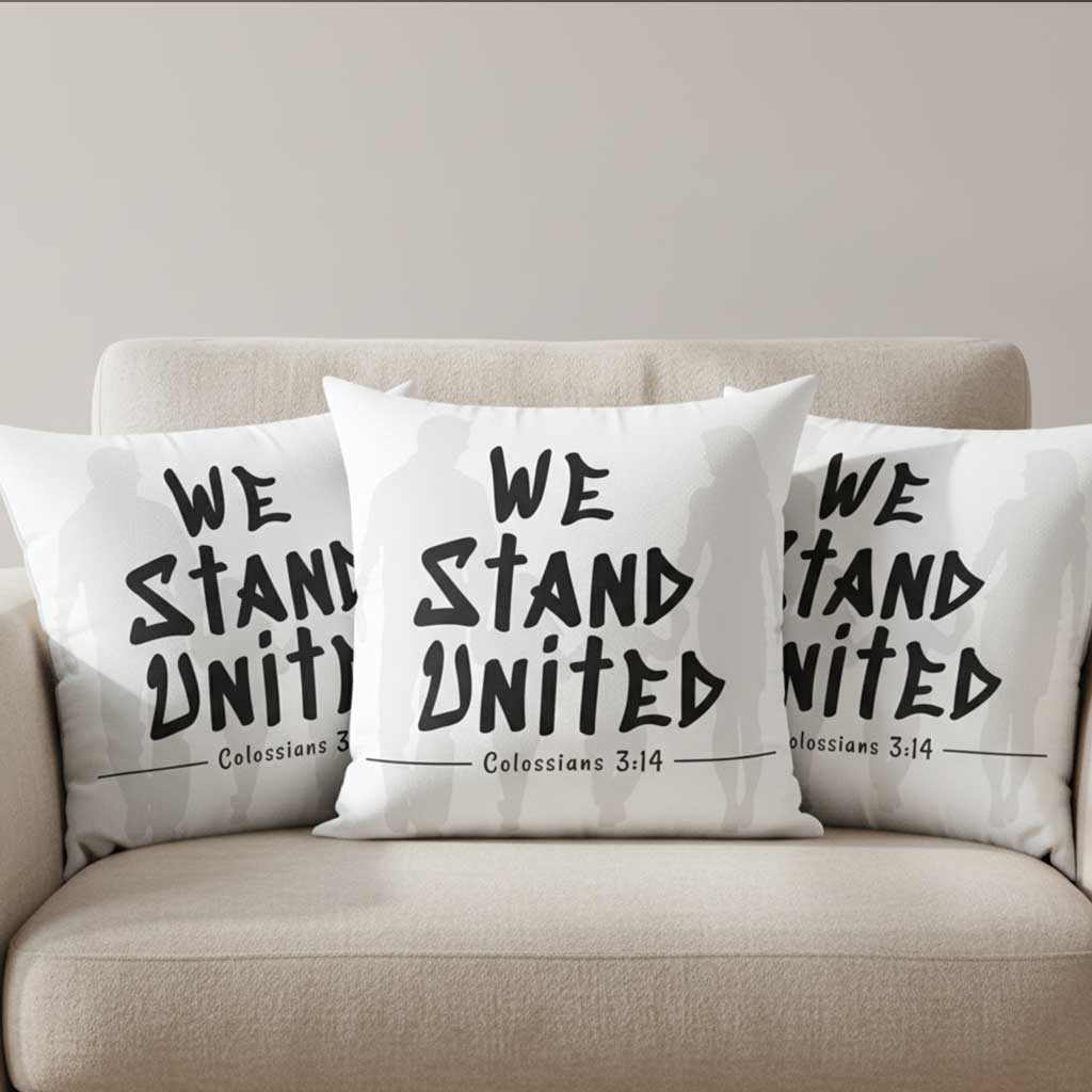 This “We Stand United – Christian Throw Pillow” highlights the message of unity and love from Colossians 3:14, making it a powerful décor piece for any faith-centered household. This inspiring Christian Throw Pillow brings warmth, harmony, and scriptural encouragement into your living room, bedroom, or family space.