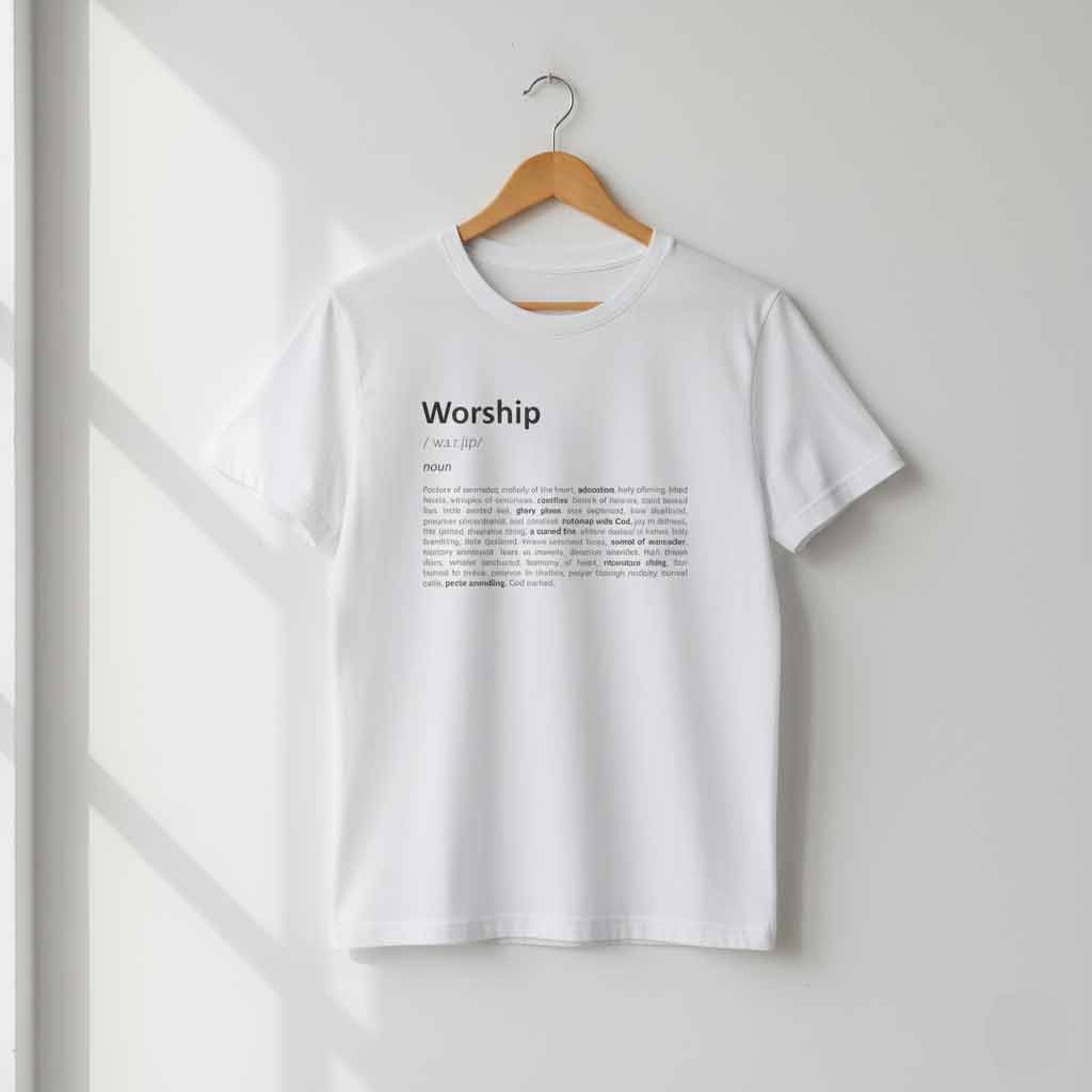 The Worship Definition Unisex Christian Tee is designed for believers who want to wear their heart for God boldly. Featuring clean, dictionary-style typography of the word “Worship,” this tee embodies the essence of adoration, praise, and surrender to the Divine.